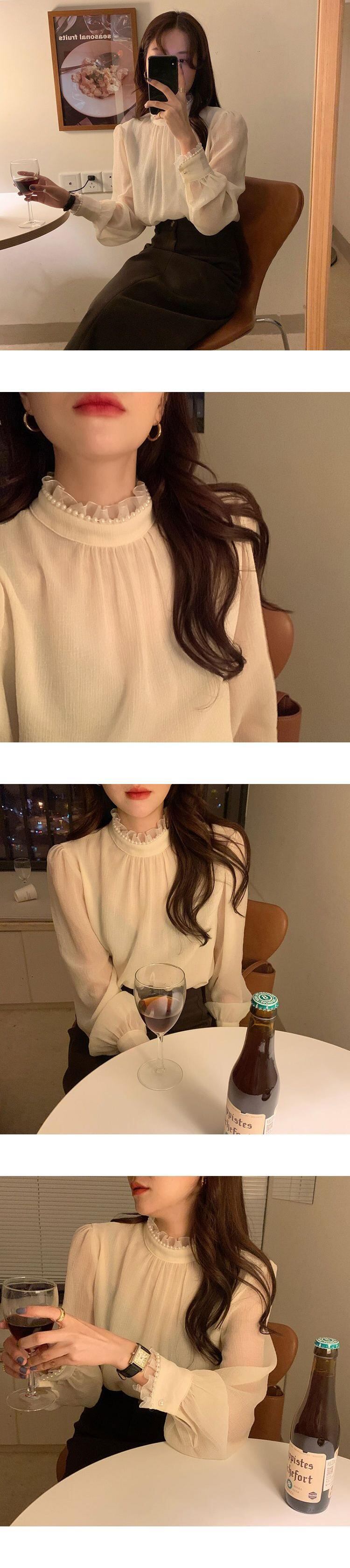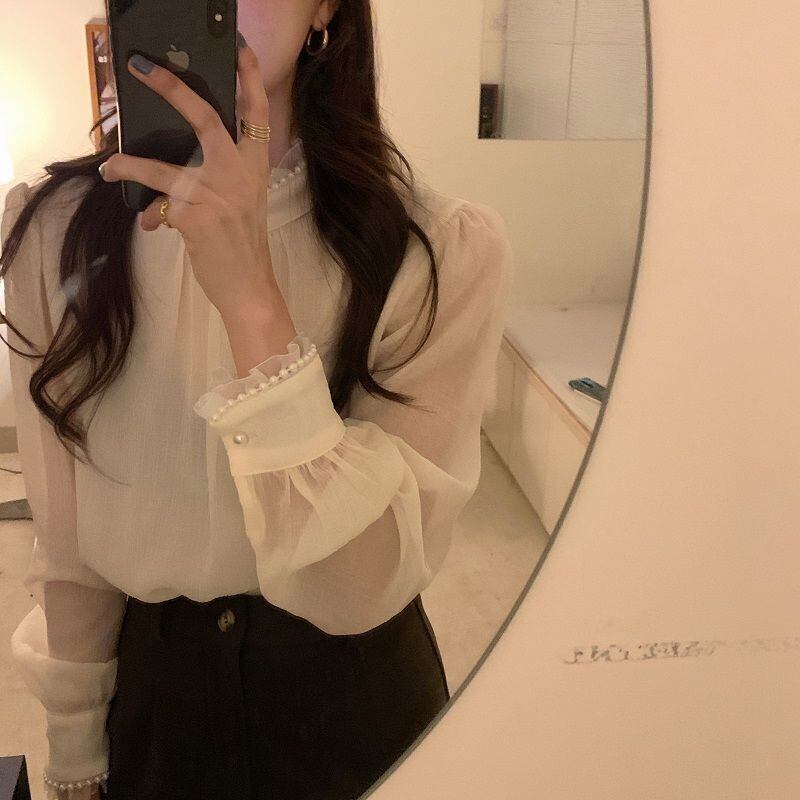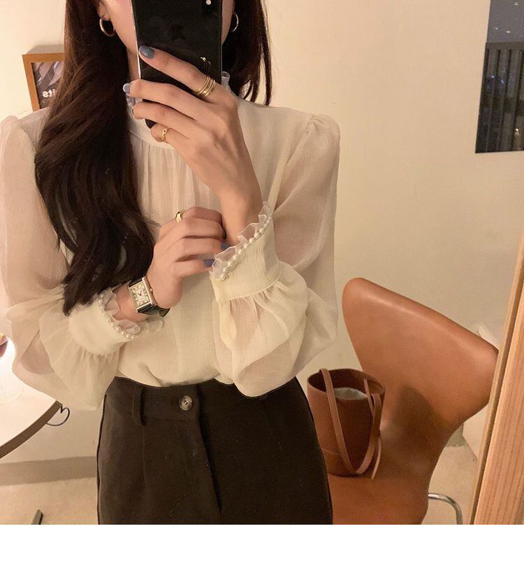シャツ視点シフォンシャツスタンドコートスタイルトップルーズビーズブラウス