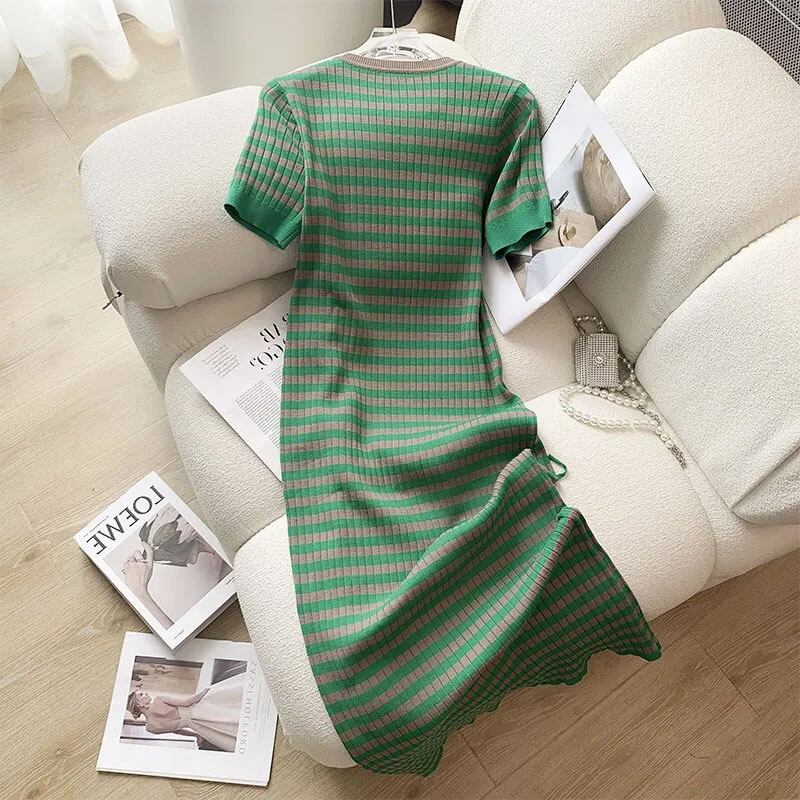 巾着グリーンストライプドレス Vestidos デ Y2k ストレート Tシャツセクシーニット Feminino 黒ルーズ ブラック