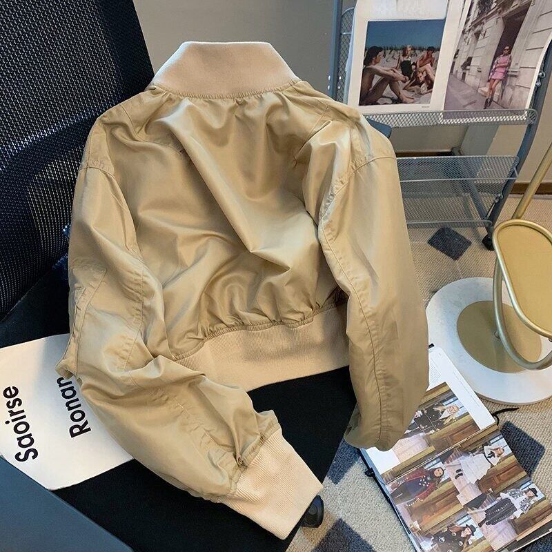 カーキ ボンバー ジャケット ルーズ カーゴ チャケータ ショート コート Jaqueta ジッパー Y2k 秋 オータム 秋物
