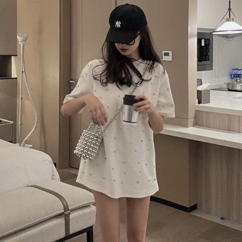 夏 Tシャツルースダイヤモンド綿 100% 半袖 Tシャツビッグベーシックトップス Tシャツ重工業 4XL コットン ハーフスリーブ サマー 夏物
