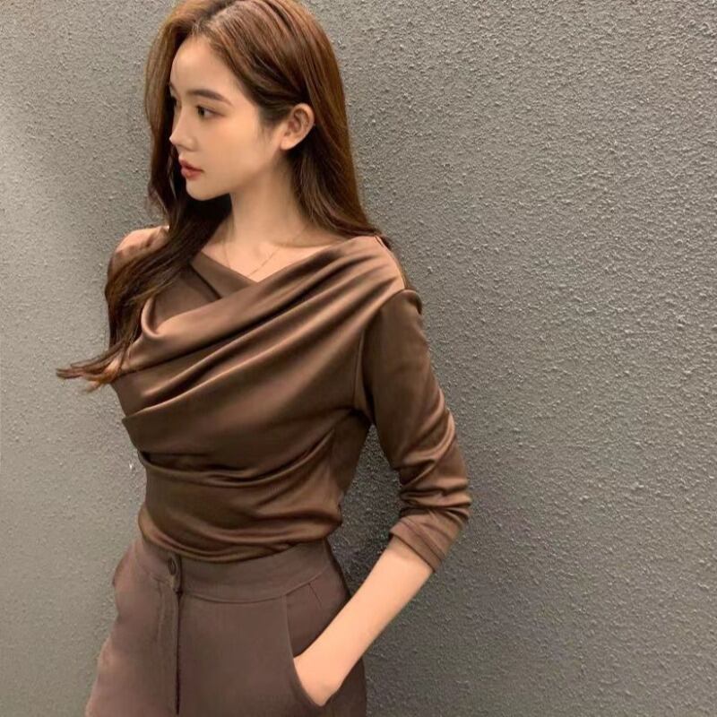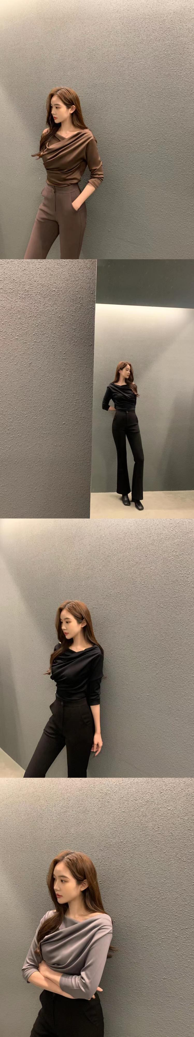シャツプリーツ襟 Tシャツ七分袖 Tシャツ Ropa Y2k トップ Camisetas Kpop グランジ Tシャツ黒 ブラック