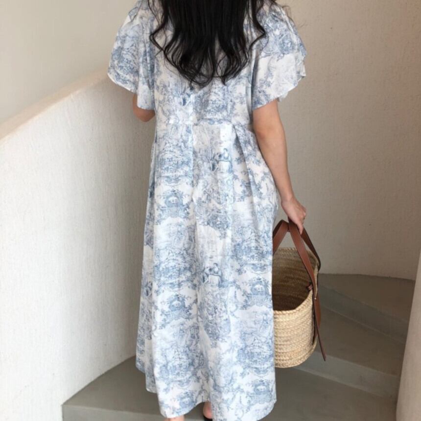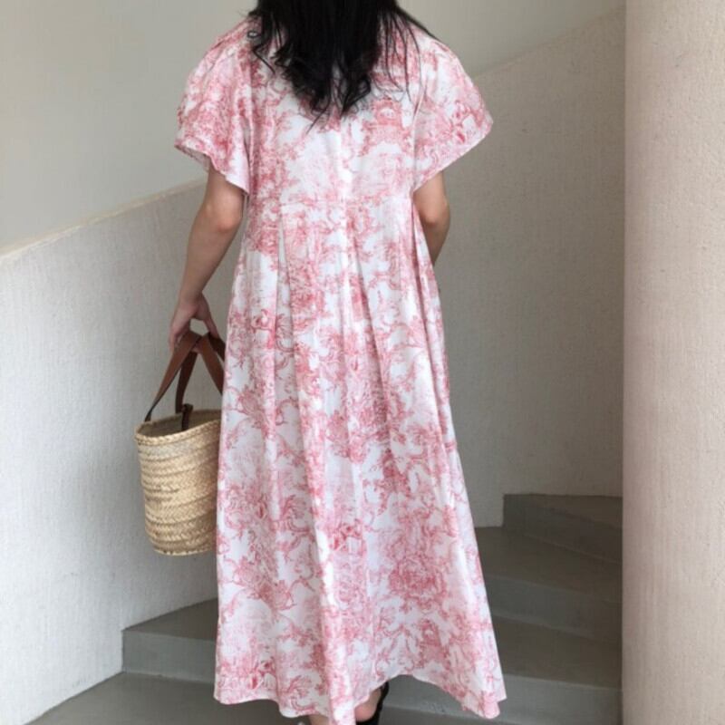 ルーズバブル半袖水墨画プリント Vestidos es パラマキシドレス自由奔放生きる春 ショート ハーフスリーブ スプリング 春物