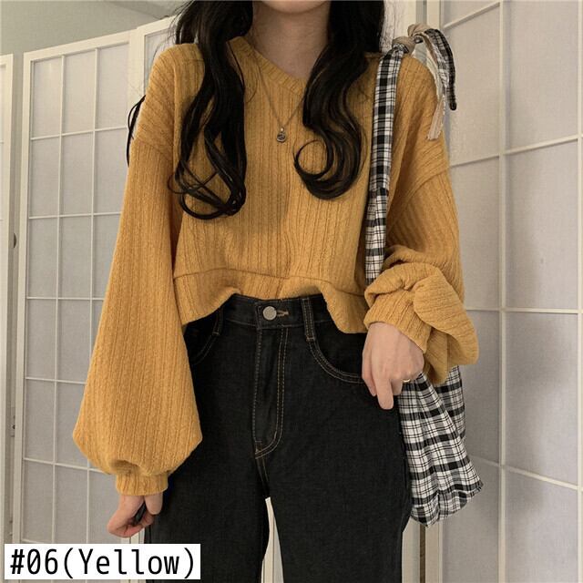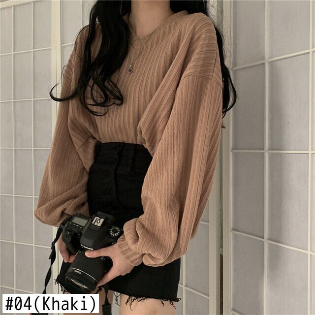 ソリッド V ショート長袖セーター セーターズ デ ランタン ジャージ ジャンパー プルオーバー ニット ブラック トップ ロング ソリッドカラー