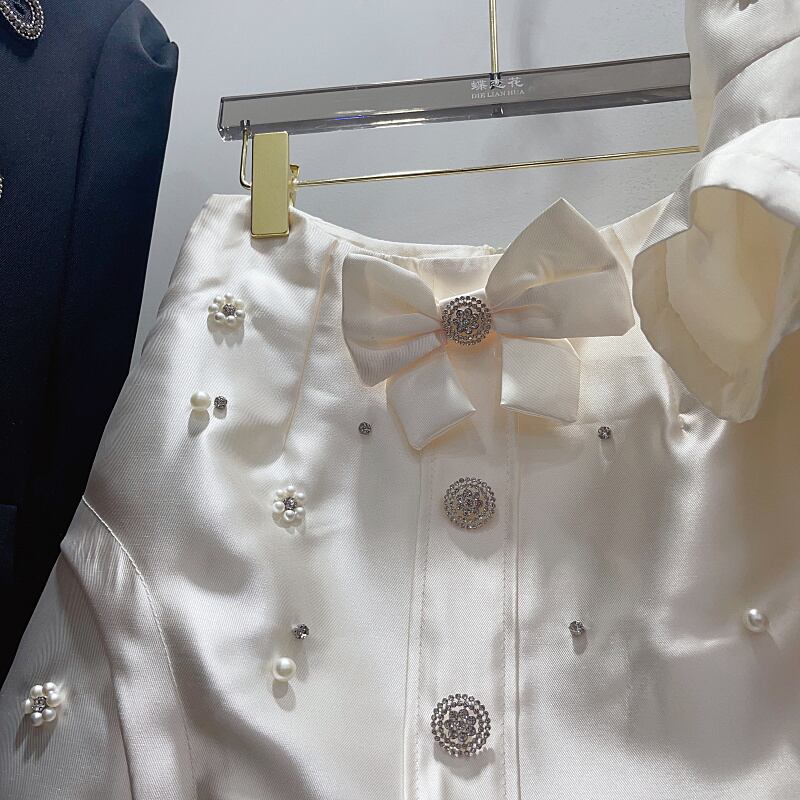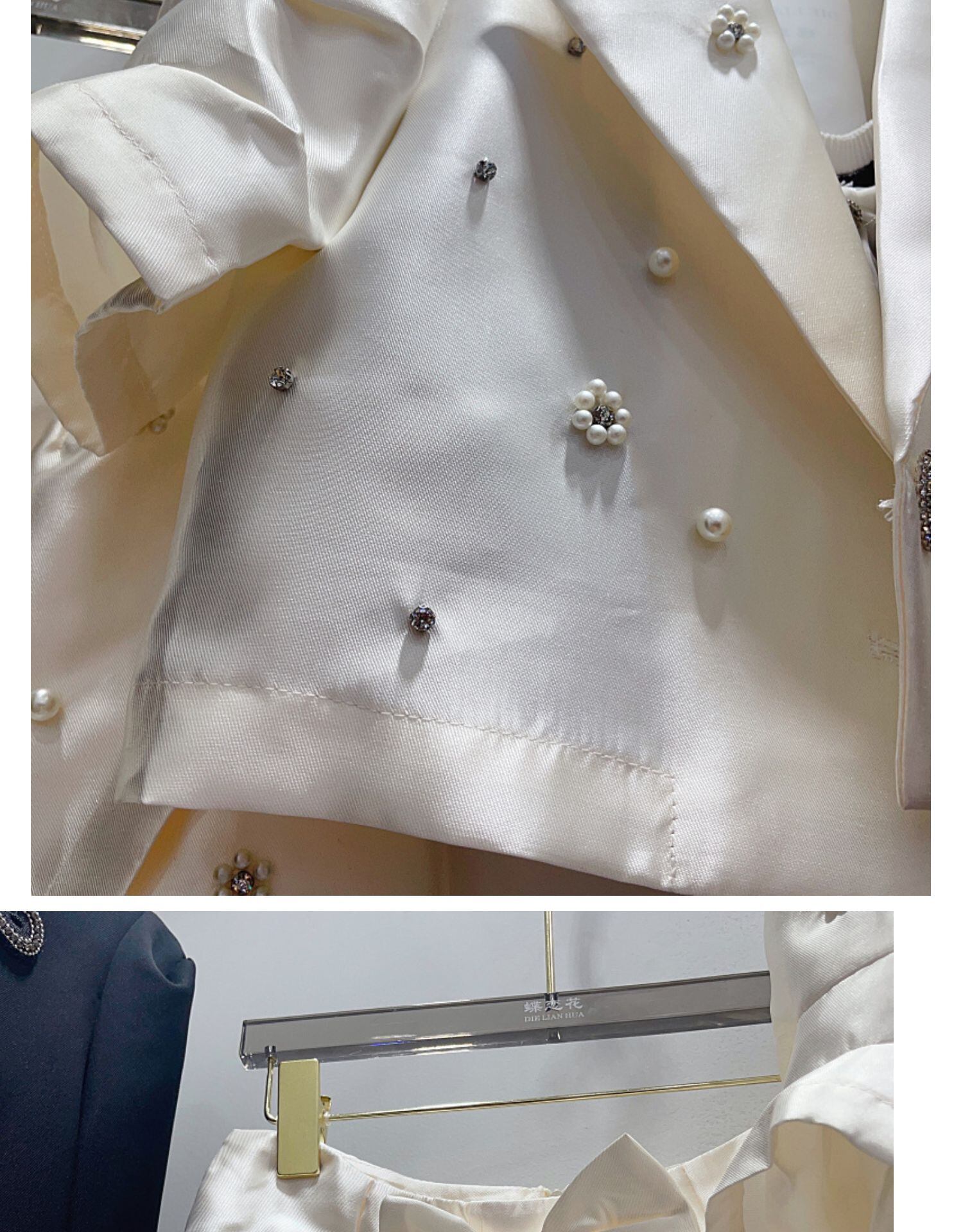 ドレスセットラインストーンボウブレザー夏ルーズスーツスカートセットノッチ半袖シャツミニ 2 セットコート ショート リボン ハーフスリーブ サマー 夏物 2セット