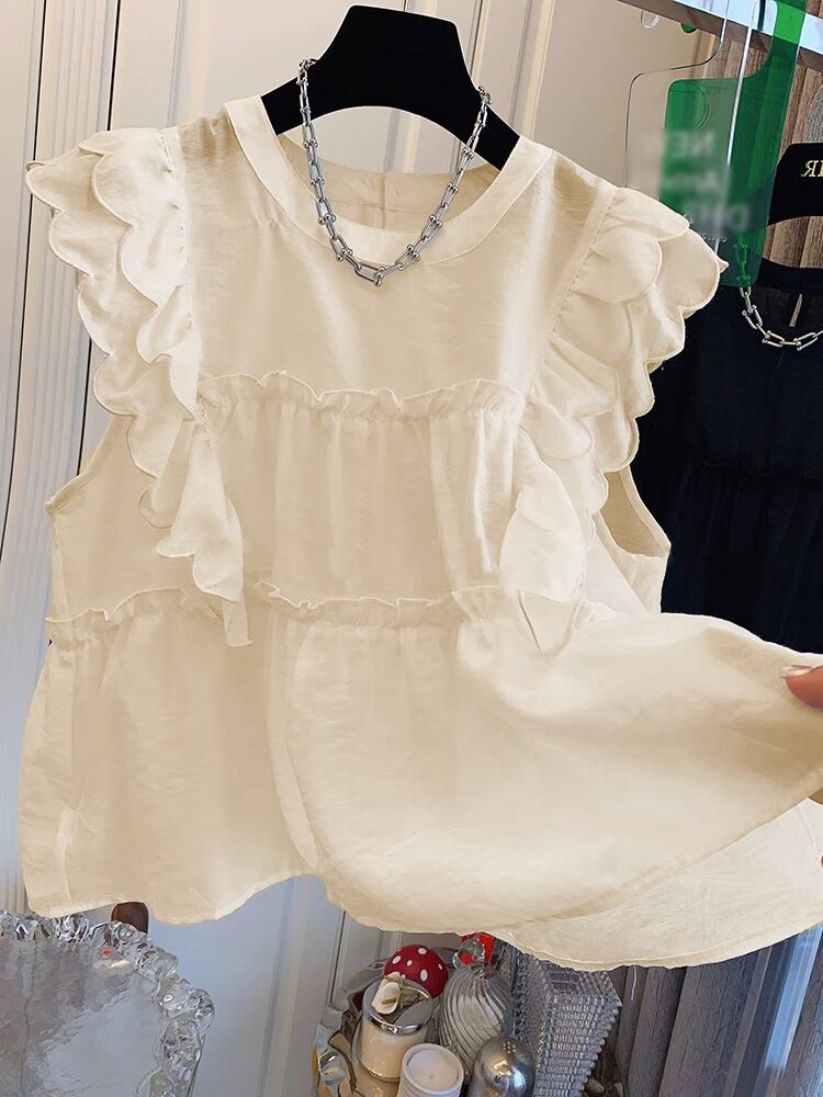 花びらシックパープルブラウスルーズオフショルダー O ネック無地パフスリーブルーズトップスシャツ人形フライングスリーブシフォン Oネック ソリッドカラー