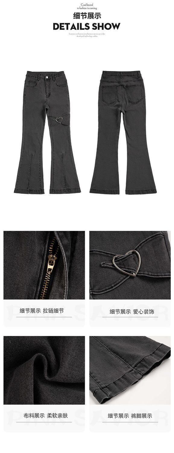 ジーンズ黒デニムフレアパンツストリートウエストスリムママズボン原宿 Y2K パンツ春 ブラック かわいい スプリング 春物
