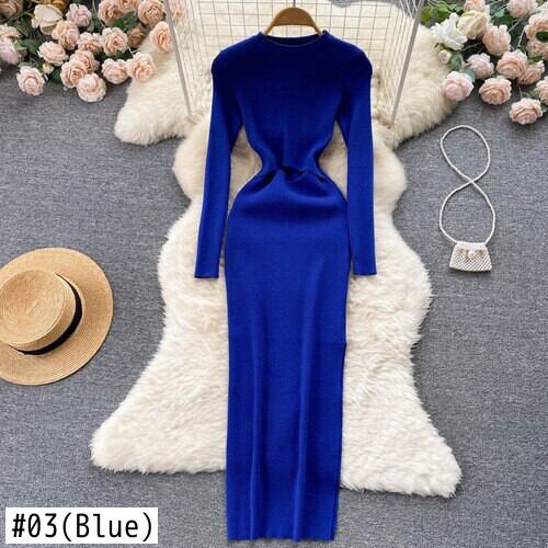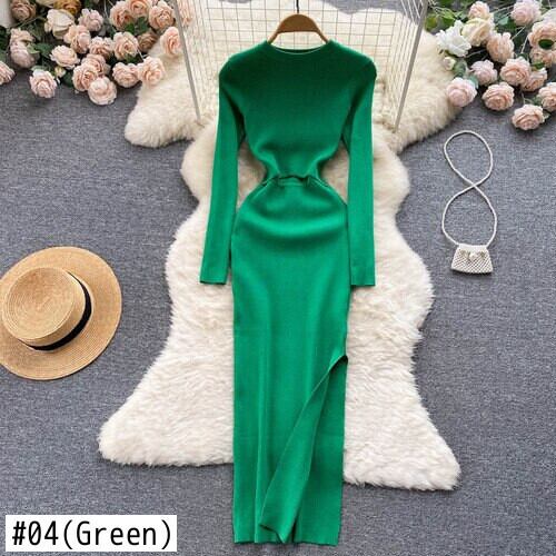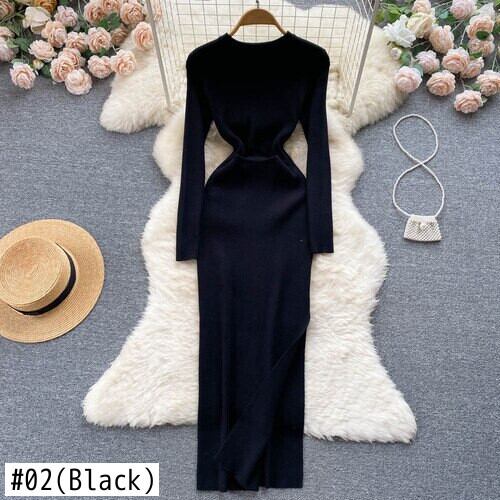 マキシドレス春秋スリムボディコン赤長袖ニットドレス Vestido Feminino 黒セーターセクシードレス ロング レッド ブラック スプリング 春物 オータム 秋物