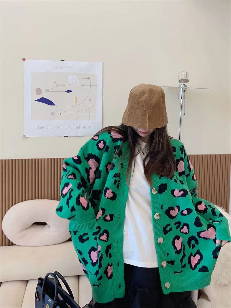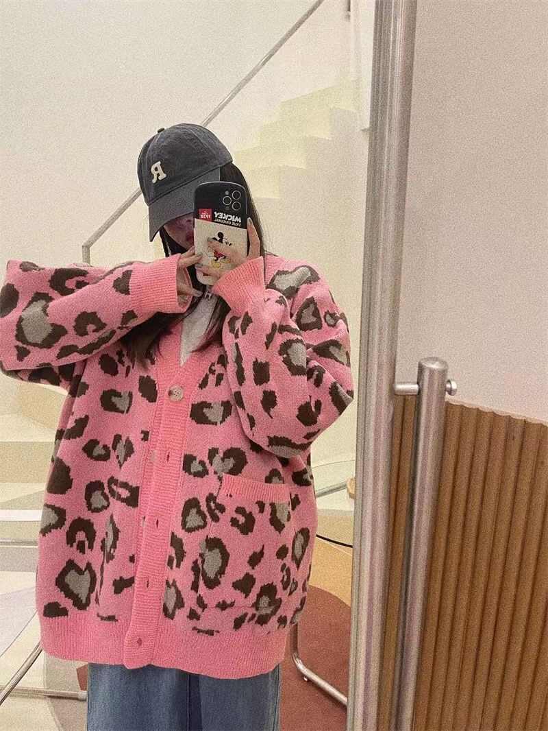 プルルーズジャカードポケットセーターヒョウニットカーディガンY2k秋冬セーターピンクカーディガンコート オータム 秋物 ウィンター 冬物