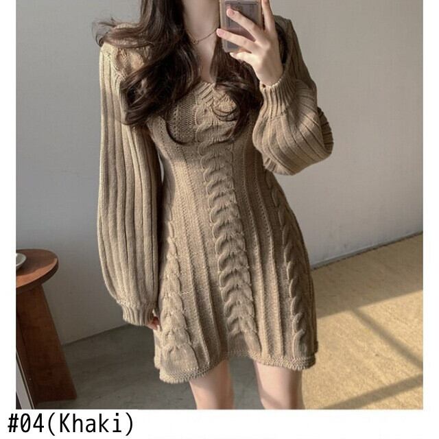 ショート V ネック ブラック ツイスト セーター ドレス スリム 長袖 A ライン ニット ドレス Vestidos De Black Doll 秋 ロング オータム 秋物 Vネック Aライン