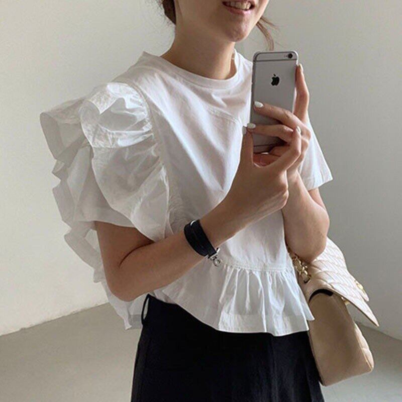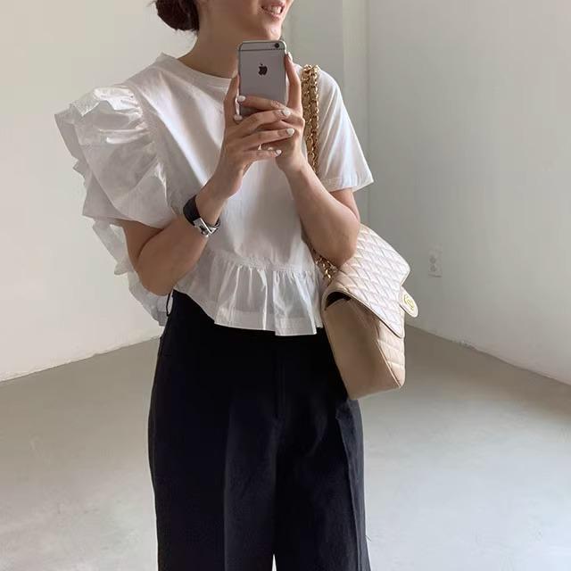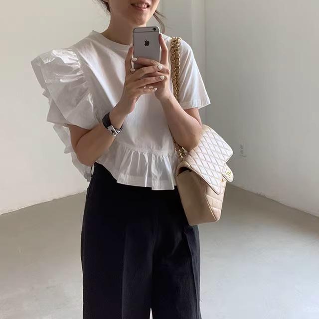 シャツステッチ Y2k グラフィック Tシャツ Tシャツグランジ Camisetas Ropa ラウンド不規則フリル半袖シャツ ショート ハーフスリーブ