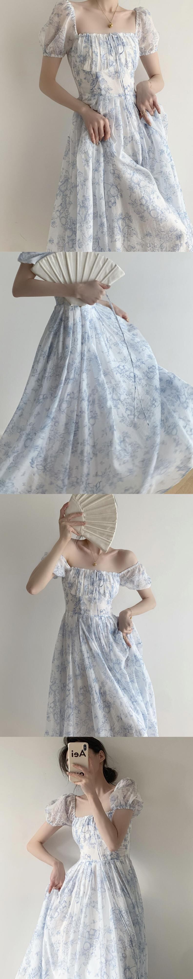 レースアップスクエア半袖スクエアネックバブル花柄ドレス Vestidos De es マキシドレスビーチドレスボヘミアンシフォン ショート ハーフスリーブ スクウェア