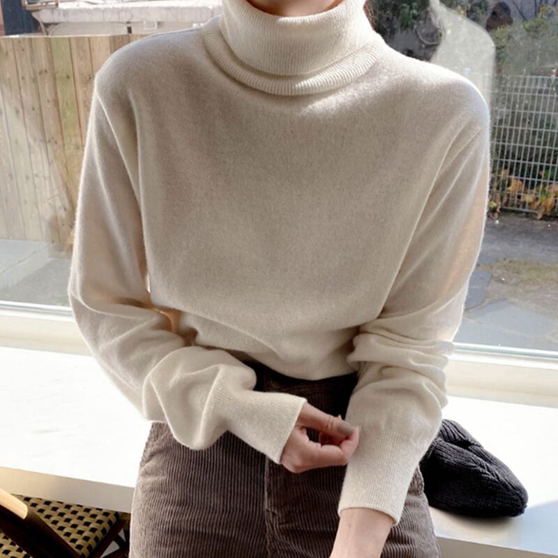 長袖ボトムシャツソリッドカラープルオーバータートルネックセータージャージジャンパートップスブラックホワイトグレーニットセーター ロング