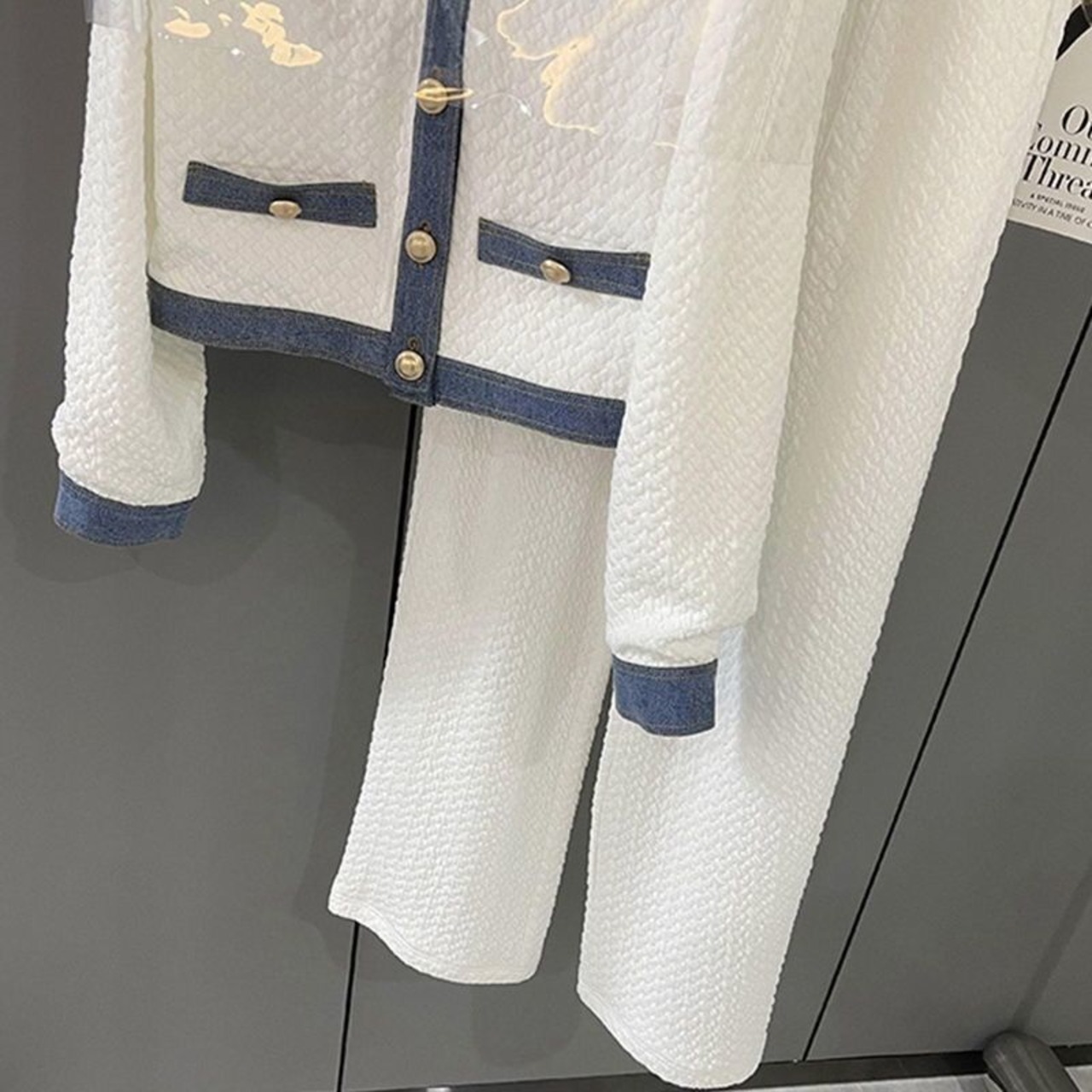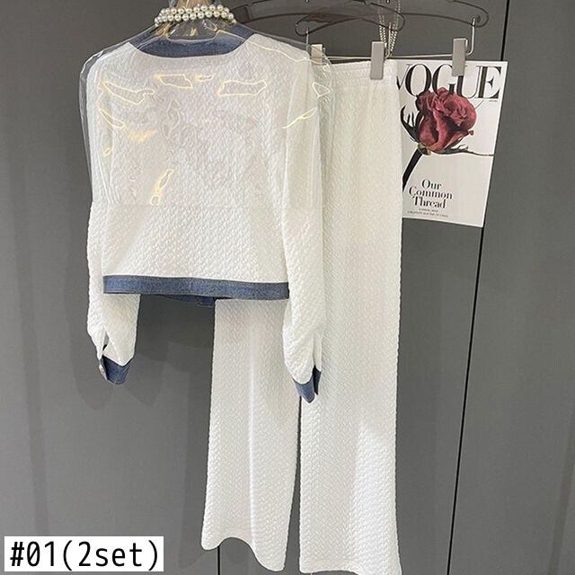 パンツセット秋ジャカードカーディガンOネックジャケットニットワイドレッグパンツトラックスーツY2kグランジ2セットパンタロン ワイドパンツ