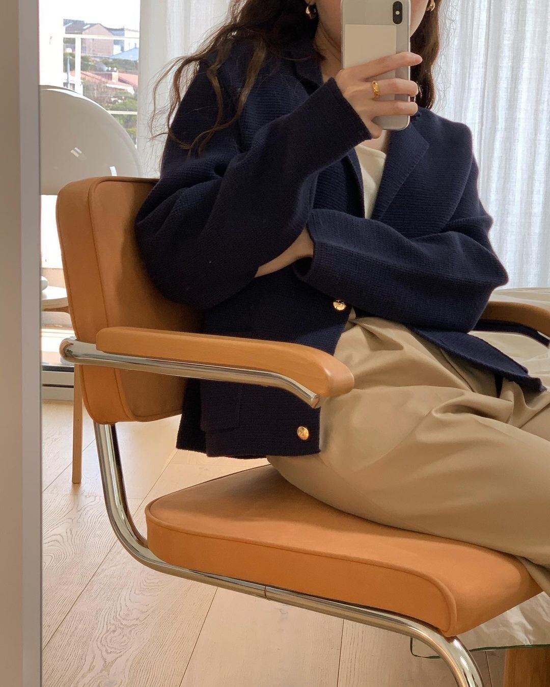 ノッチ襟スリム春秋セーターシングルブレストルーズポケットセーター特大ニットカーディガンコート スプリング 春物 オータム 秋物
