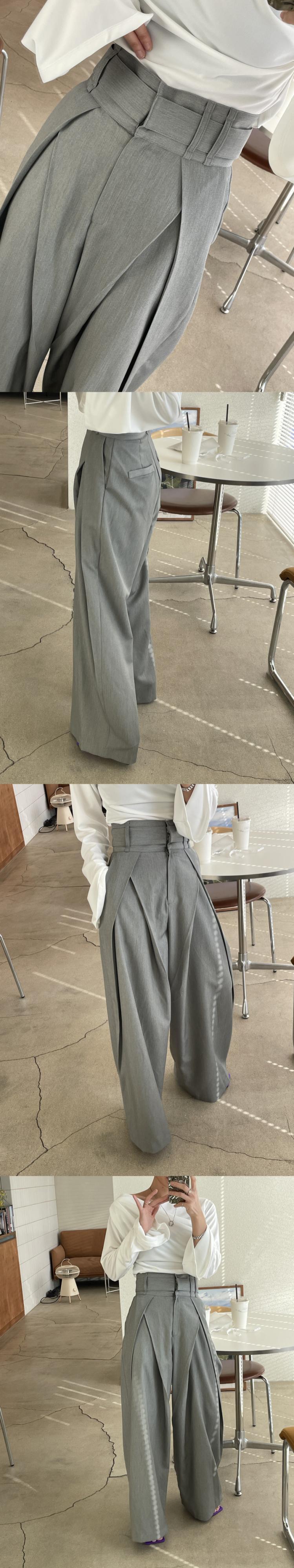 ルーズパッチワークプリーツパンツウエスト包帯ポケットワイドレッグパンツグレーテーラード ワイドパンツ ソリッドカラー