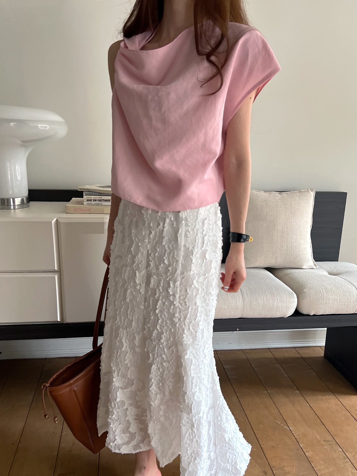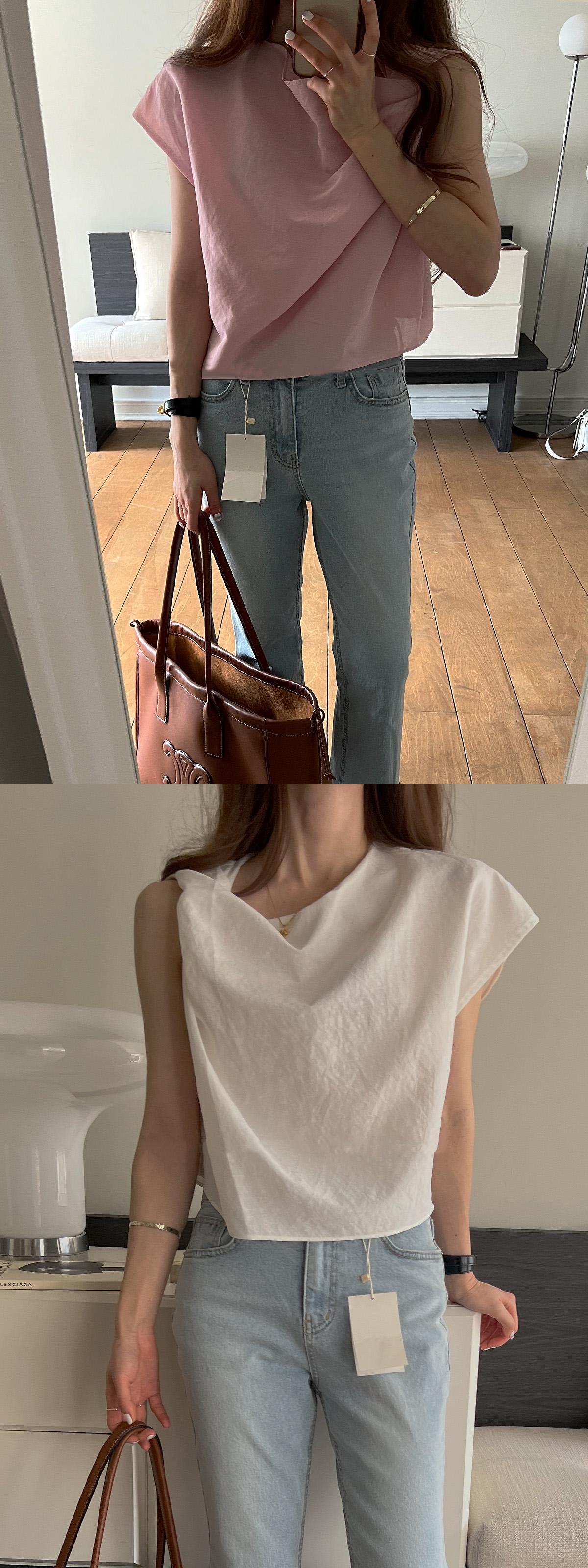 シャツ斜め襟ワンショルダールーズノースリーブ Tシャツセクシーピンクシャツブラウス ソリッドカラー