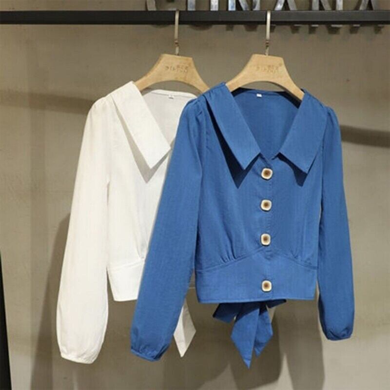 シャツショートウエストトップニッチドール長袖シャツブルーサ白シャツルーズブラウス ロング ホワイト