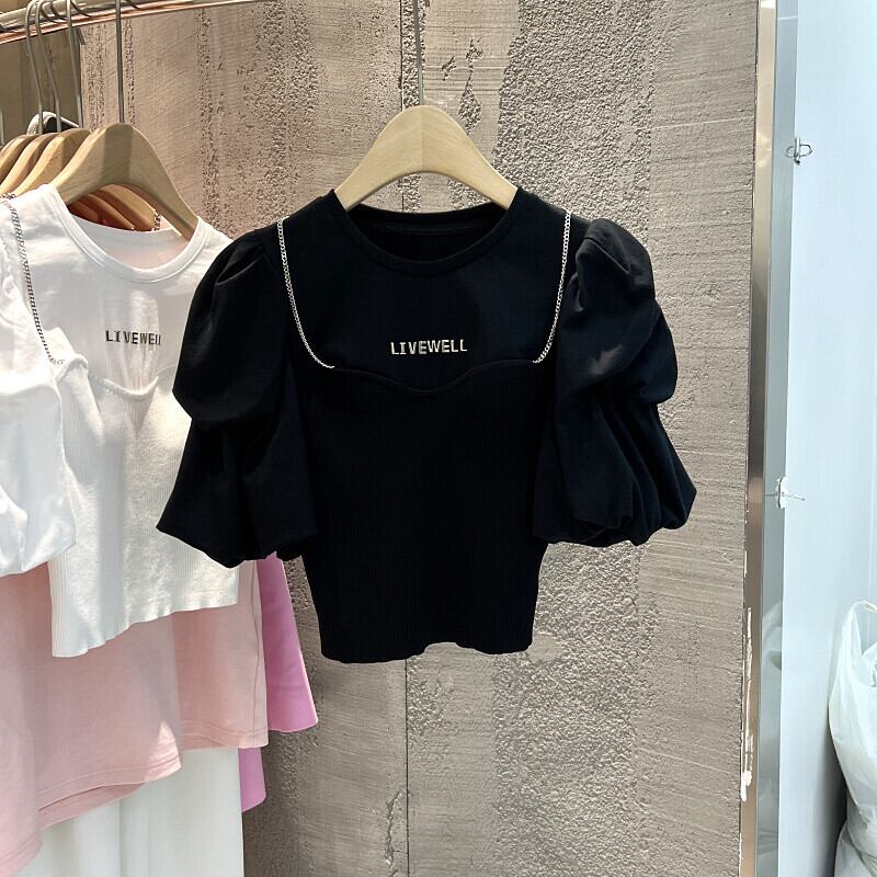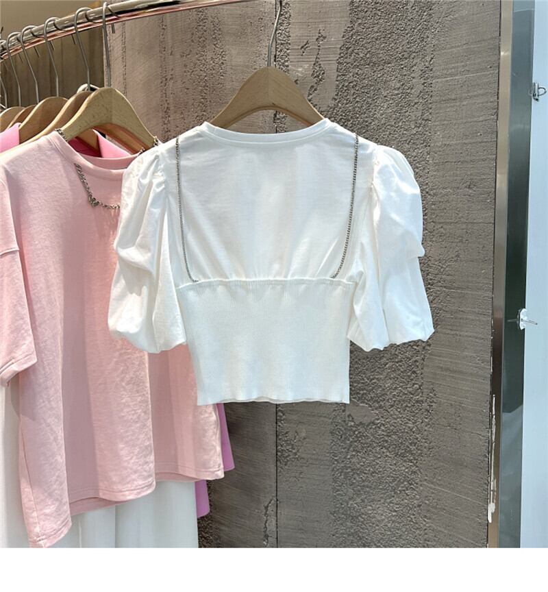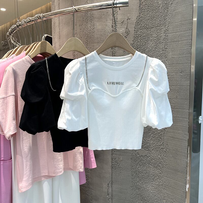 チェーン偽 2 半袖 Tシャツ原宿クロップトップ Ropa デ Camisetas シャツ Y2k Tシャツレター Tシャツグラフィック ショート ハーフスリーブ かわいい