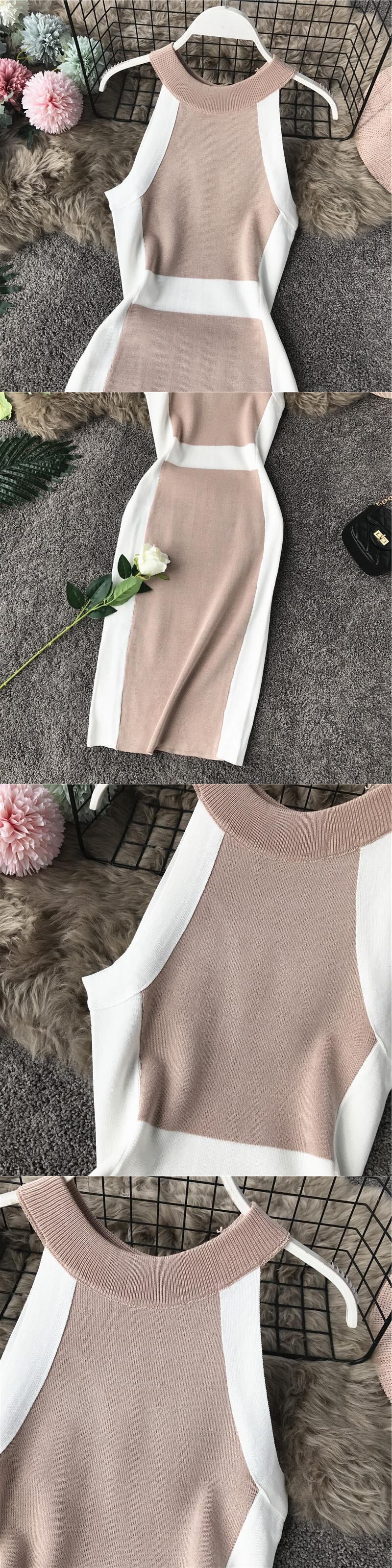 ボディコンローブセクシーノースリーブオフショルダーハンギングネックドレスブラックホワイトコントラストスリムフィットラップボトムニットドレス Y2k