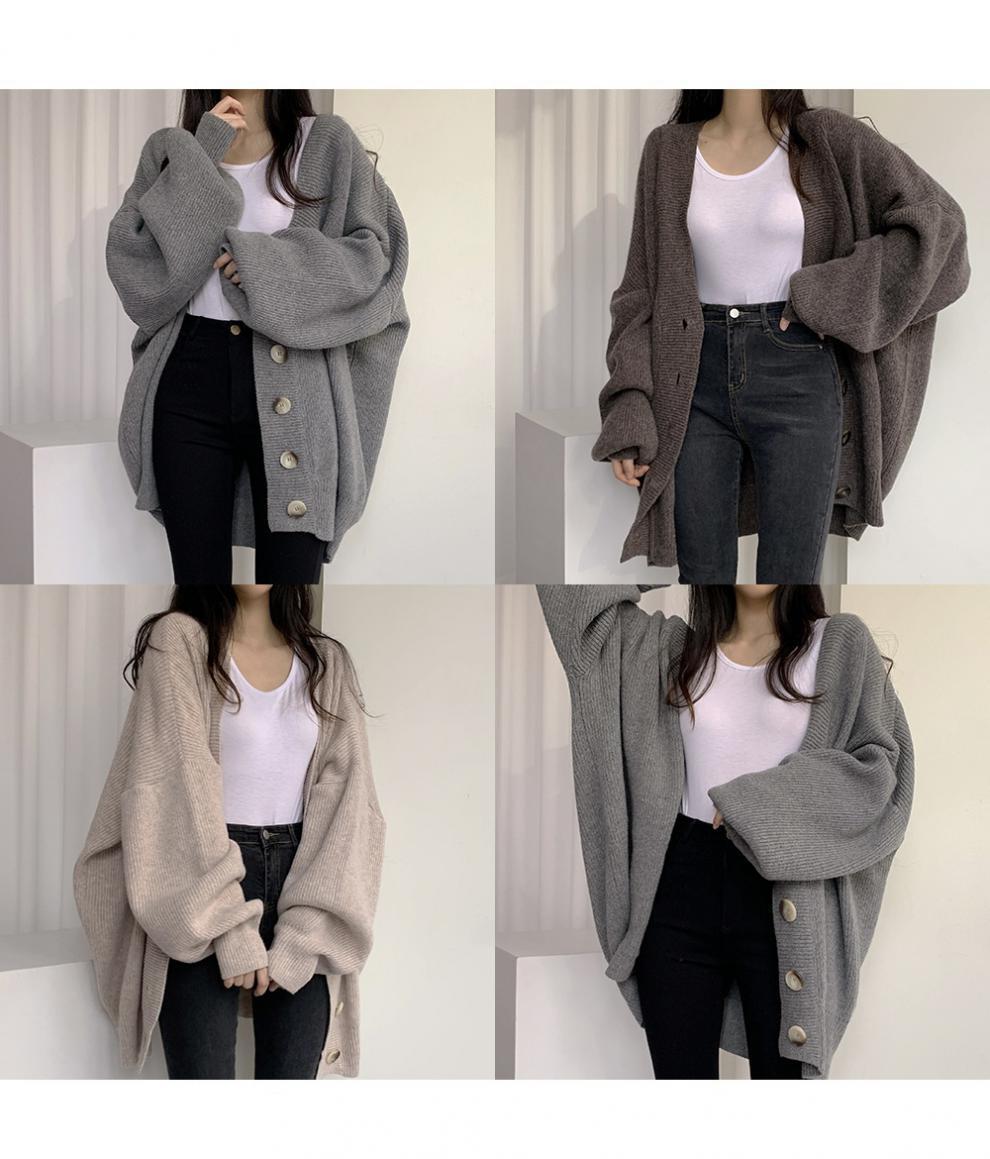 怠惰スタイルセータージャケット V ネックシングルブレストルーズランタンスリーブニットカーディガン Y2k 服ロンググレーカーディガン Vネック