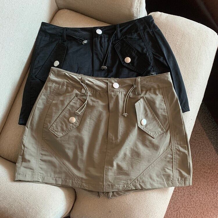 ウエスト A ラインラップヒップスパイシーガールショートグレー巾着スカートペチコートミニカーゴ Y2k スカートセクシーファルダ Aライン