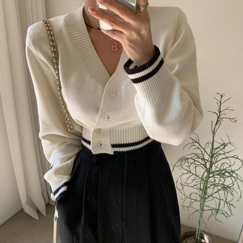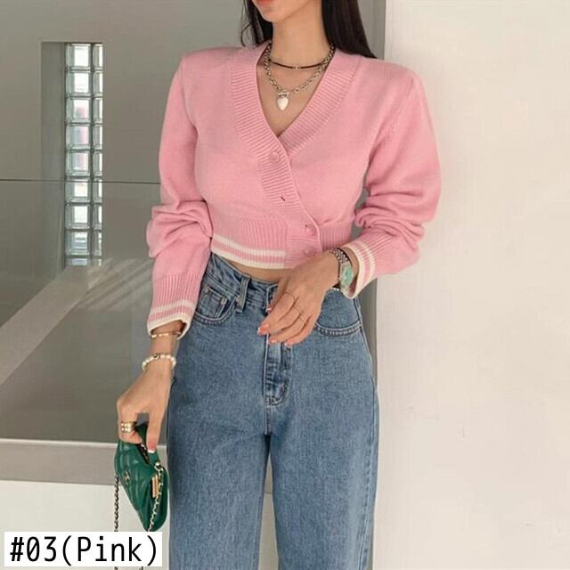 V ネック クロップド カーディガン セーター スリム ウエスト カーディガン Feminino 甘いセーター ピンク カーディガン コート ニット 大人ガーリー スウィート キュート カジュアル