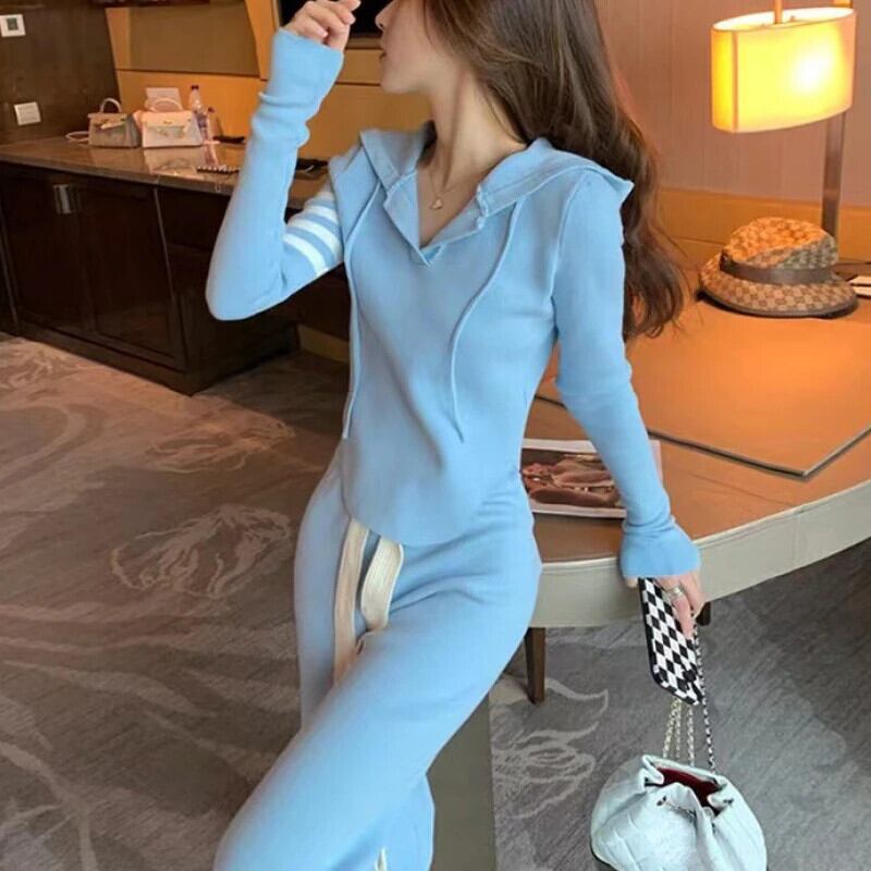 ブルースウェットパンツワイドレッグパンツスーツトラックスーツツーピースセットパーカートレーナートップスニットストライプセータージャケット ワイドパンツ