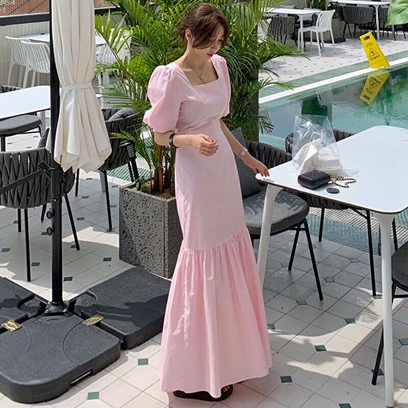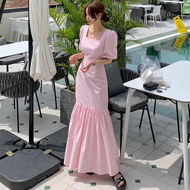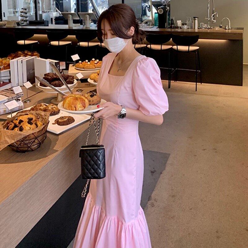 スリムスクエア Vestidos デ半袖ローブピンクフィッシュテールドレスボディコンドレスパーティー ショート ハーフスリーブ スクウェア