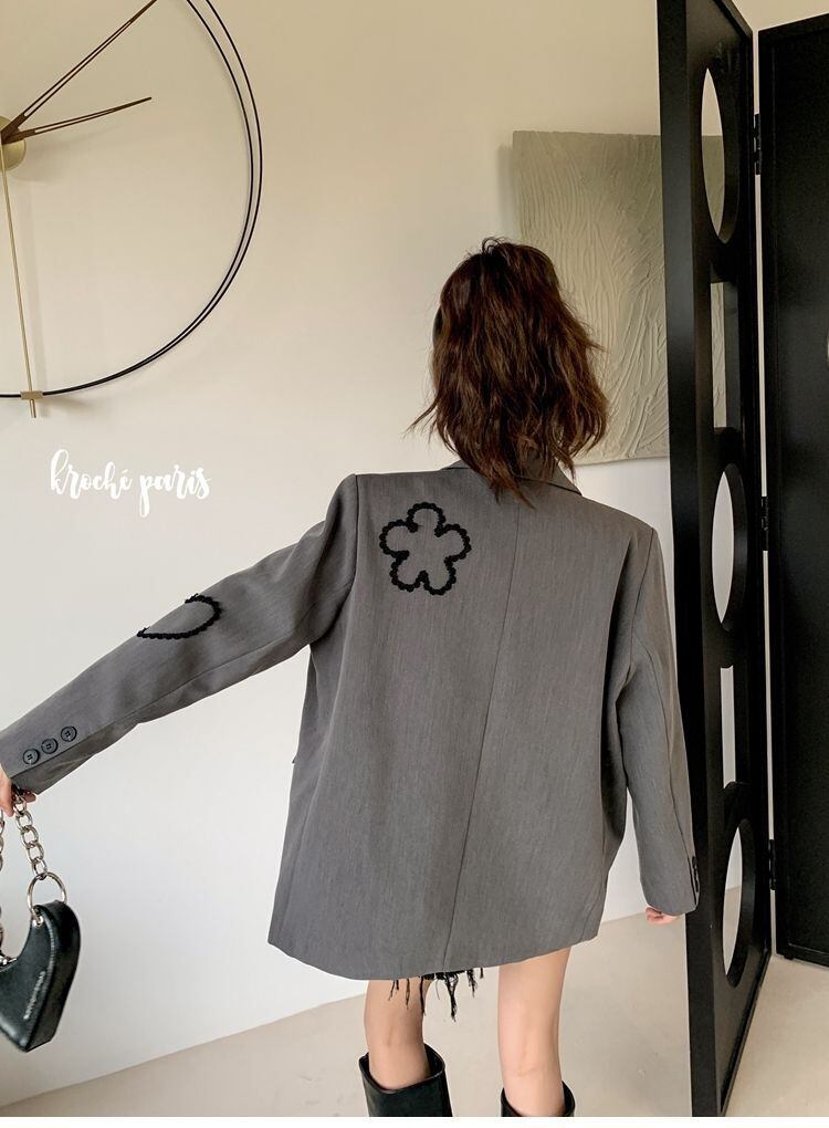 花刺繍コートシングルブレスト長袖ルーズブレザー春秋すべて一致ポケットブレザー ロング スプリング 春物 オータム 秋物 フラワーデザイン