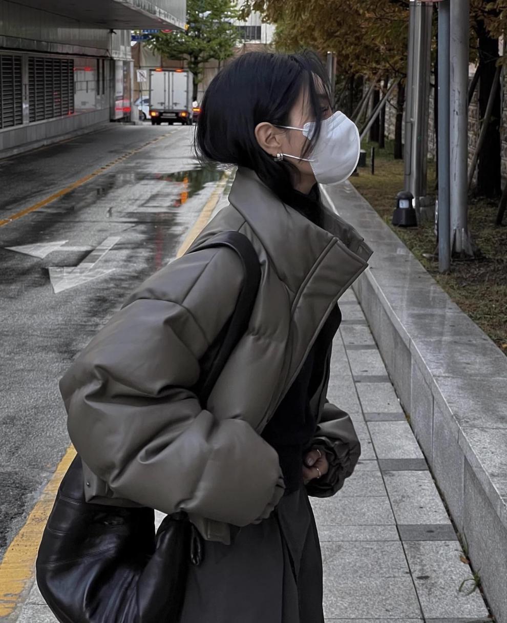 ショート Pu レザーコットンコート冬肥厚パンコートフグジャケットジャケット黒パーカー Y2k ブラック ウィンター 冬物