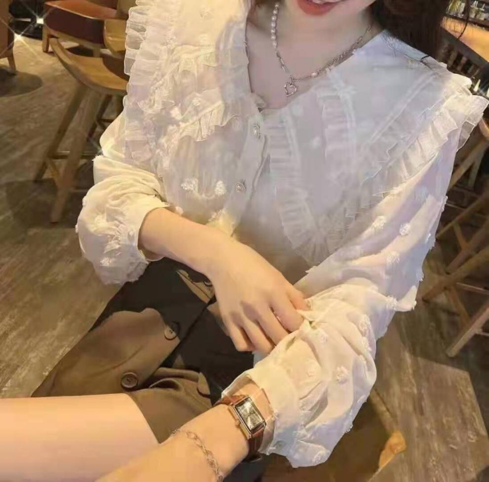 真菌長袖レースシャツトップ人形襟水玉シャツブラウスシャツ ロング