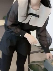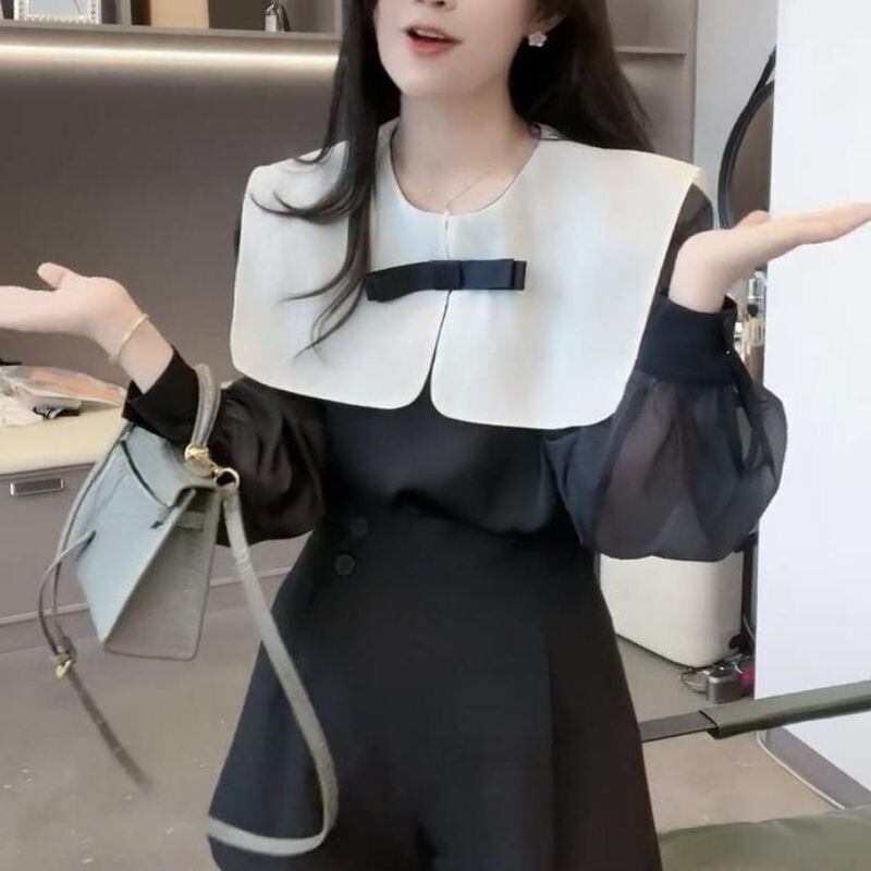 ボウ ドール ネック Roupas 視点ブラック シフォン シャツ Y2k トップ長袖ブラウス シャツ ロング