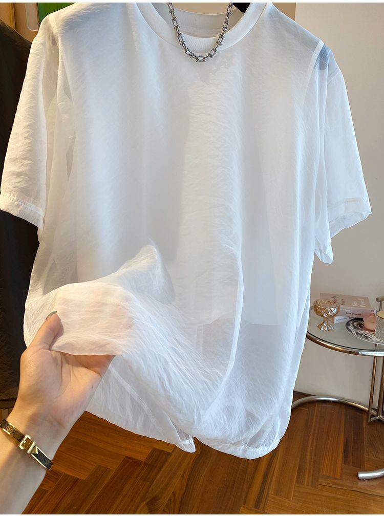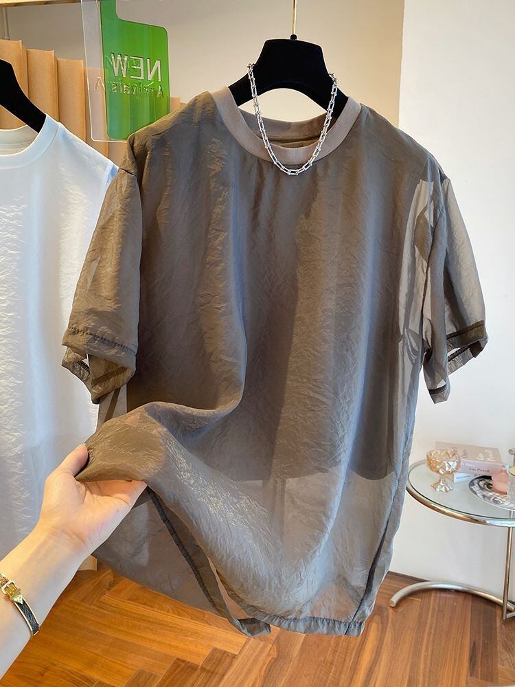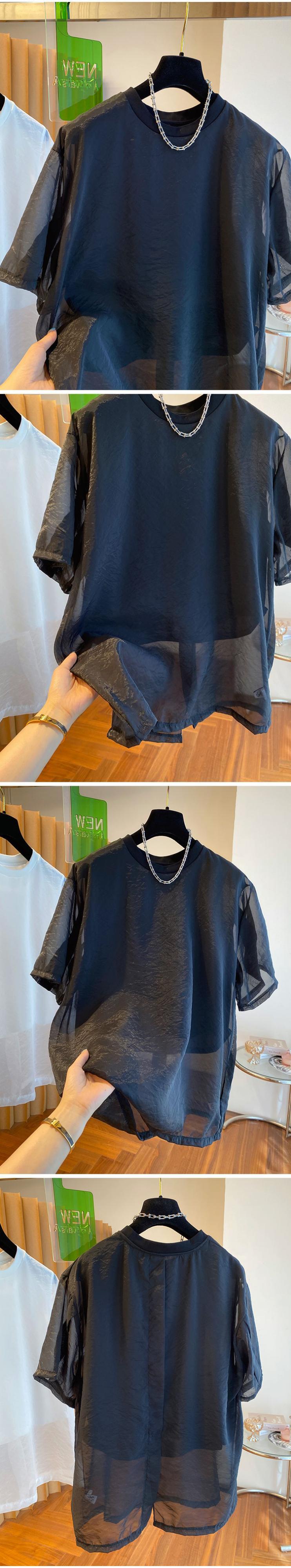 メッシュ日焼け止め Tシャツ レディース 半袖 フェイク ツーピース トップス グランジ オーバーサイズ Tシャツ ロパデグラフィック Y2k ショート ハーフスリーブ
