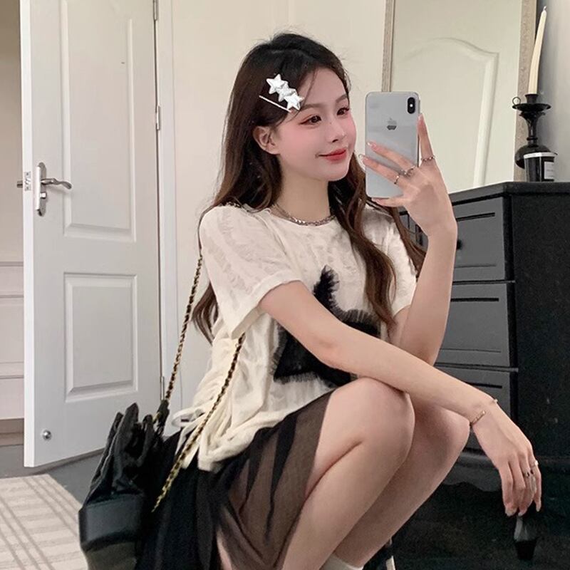 包帯巾着トップ多用途スパイシーガール半袖スター Tシャツ Camisetas グラフィック Tシャツ Y2k トップグランジ服 ショート ハーフスリーブ