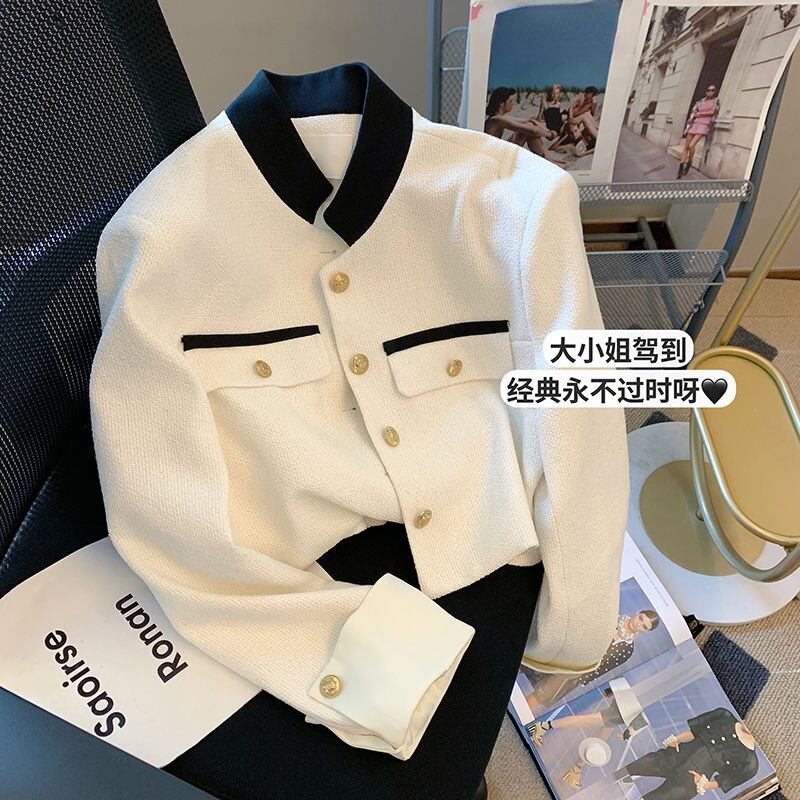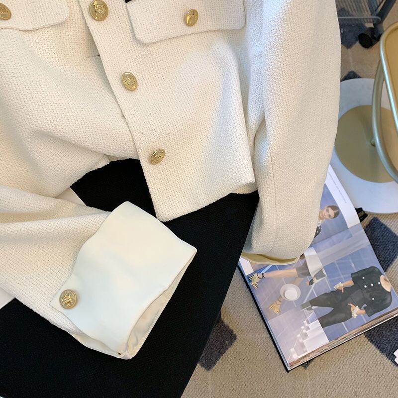 気質長袖トップ白ブレザーチャケータクロップブレザースタイルジャケットボタンコートシック ロング ホワイト
