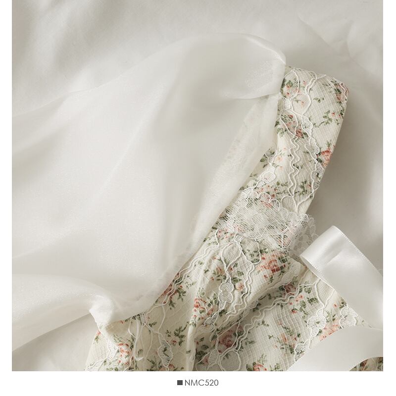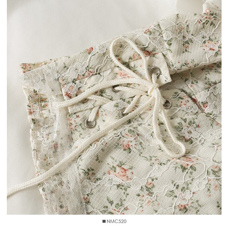 フェイクツーブラウス s es スリムスクエアコントラストレース刺繍トップボウレースアップ長袖ショートシャツ花柄 ロング リボン スクウェア