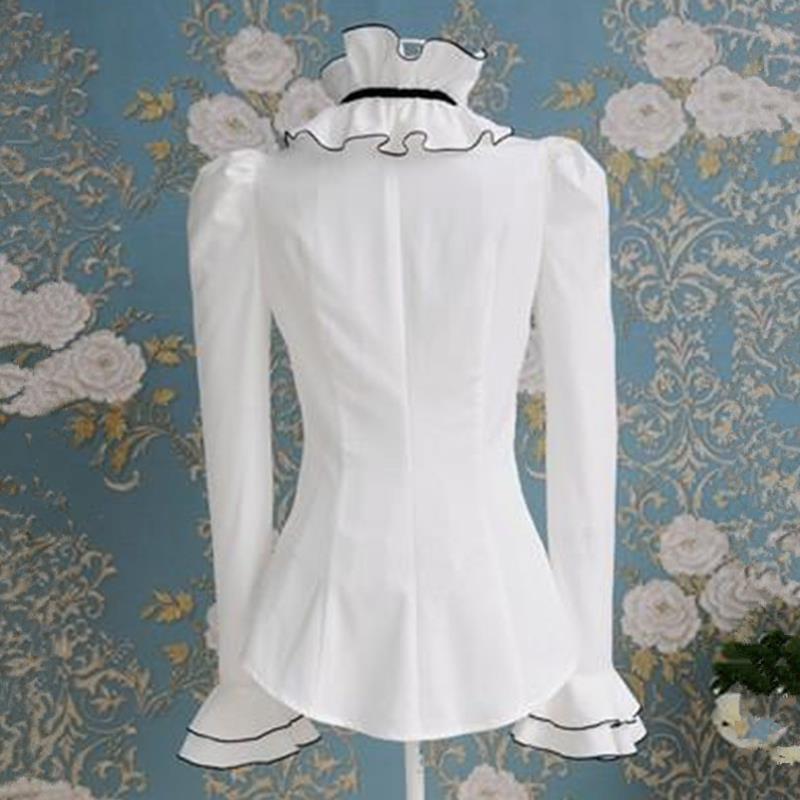 春秋白フリル黒リボンリボンバブル長袖シャツトップブラウスシャツフレアワークブラウス ロング ホワイト ブラック スプリング 春物 オータム 秋物