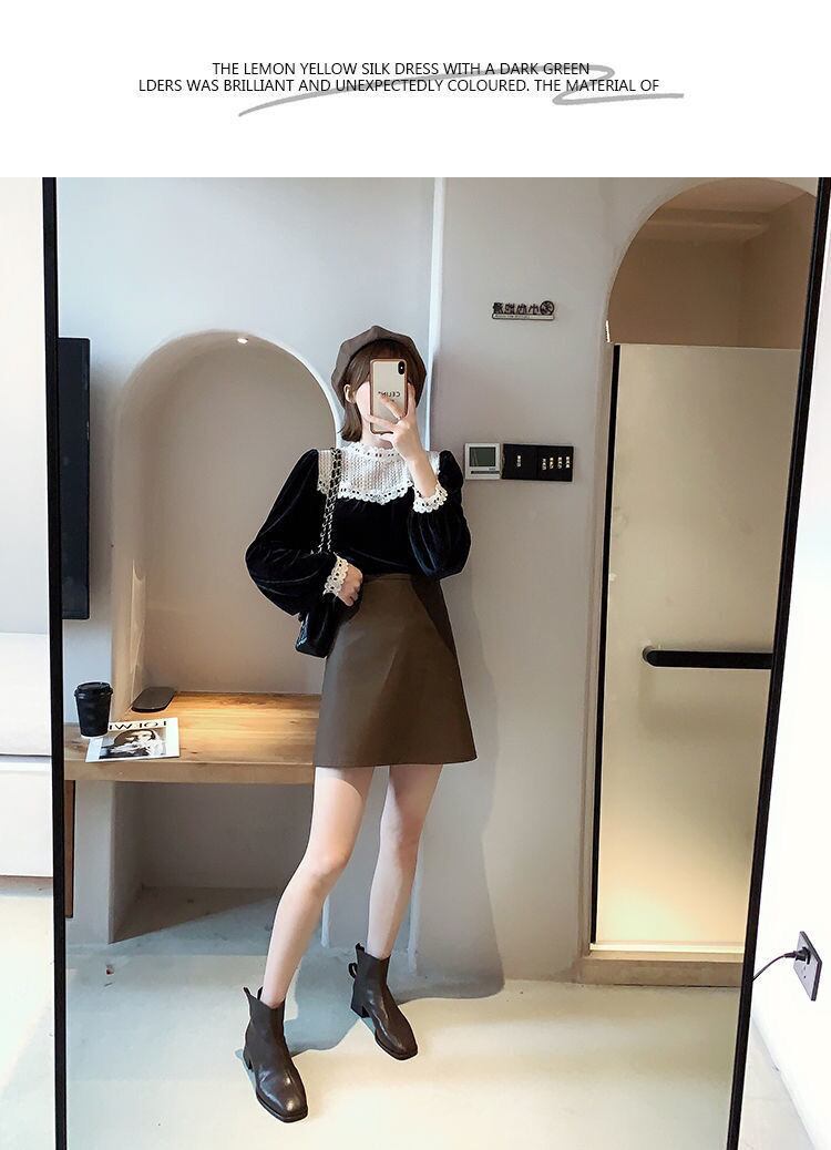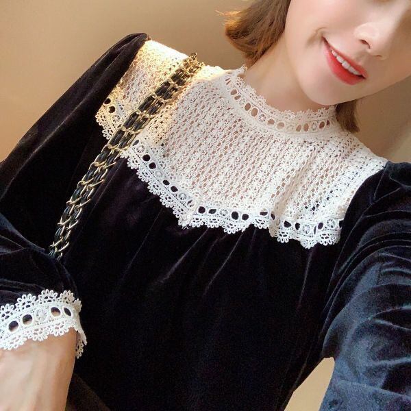 シャツ春かぎ針編み黒ベルベットシャツ服 Camisetas グラフィック Tシャツ Ropa レースシャツトップス ブラック スプリング 春物