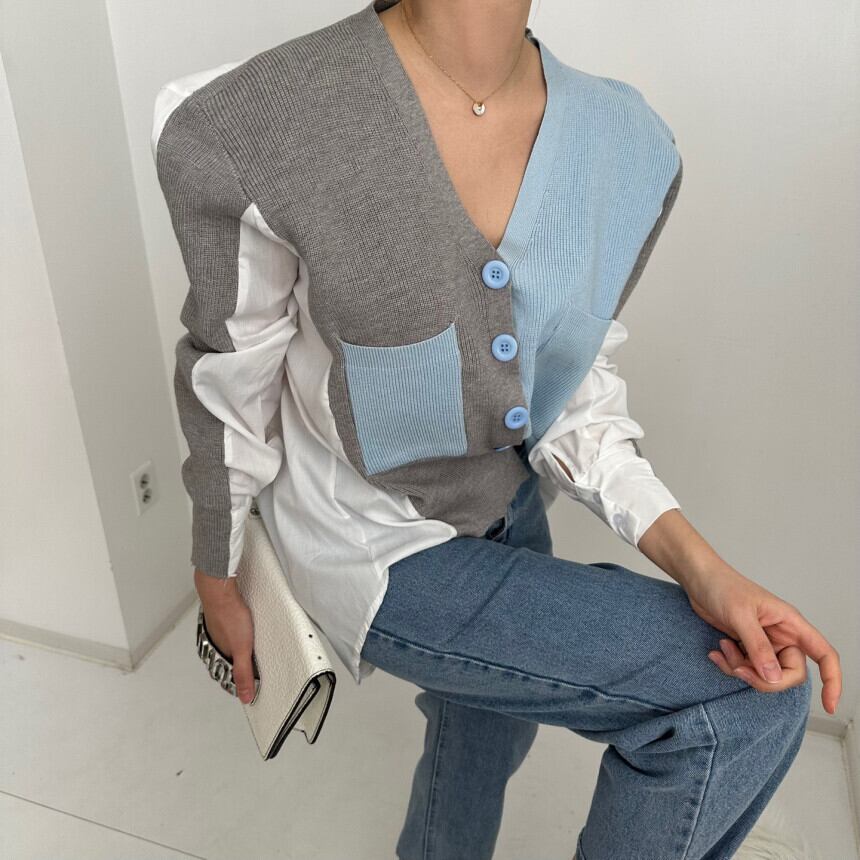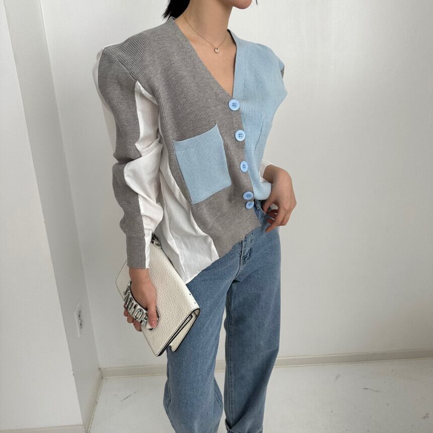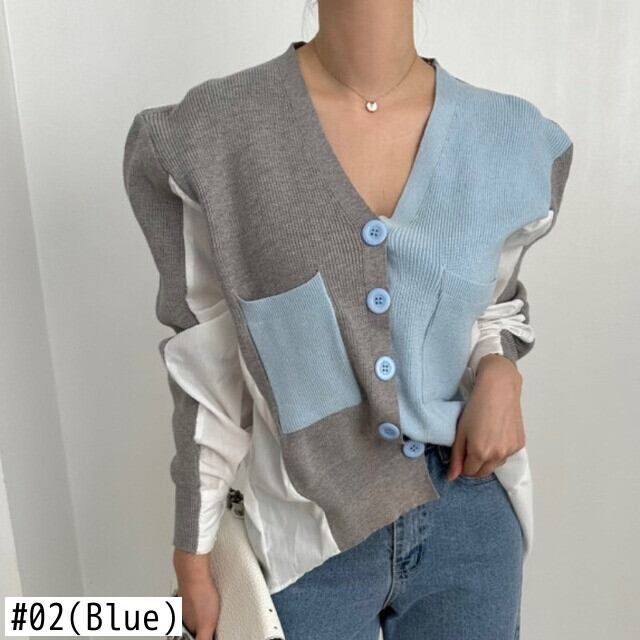 秋怠惰ルーズ不規則コントラストカラーシャツ V ネック長袖ニットカーディガンコート服ピンクカーディガンセーター ロング オータム 秋物 Vネック