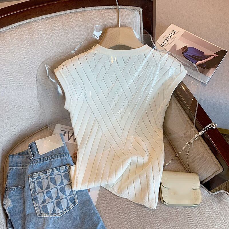 フレンチスタイルノースリーブ Tシャツタンクアイスニットベストスリム O ネックトップス Tシャツキャミソール Oネック シルク