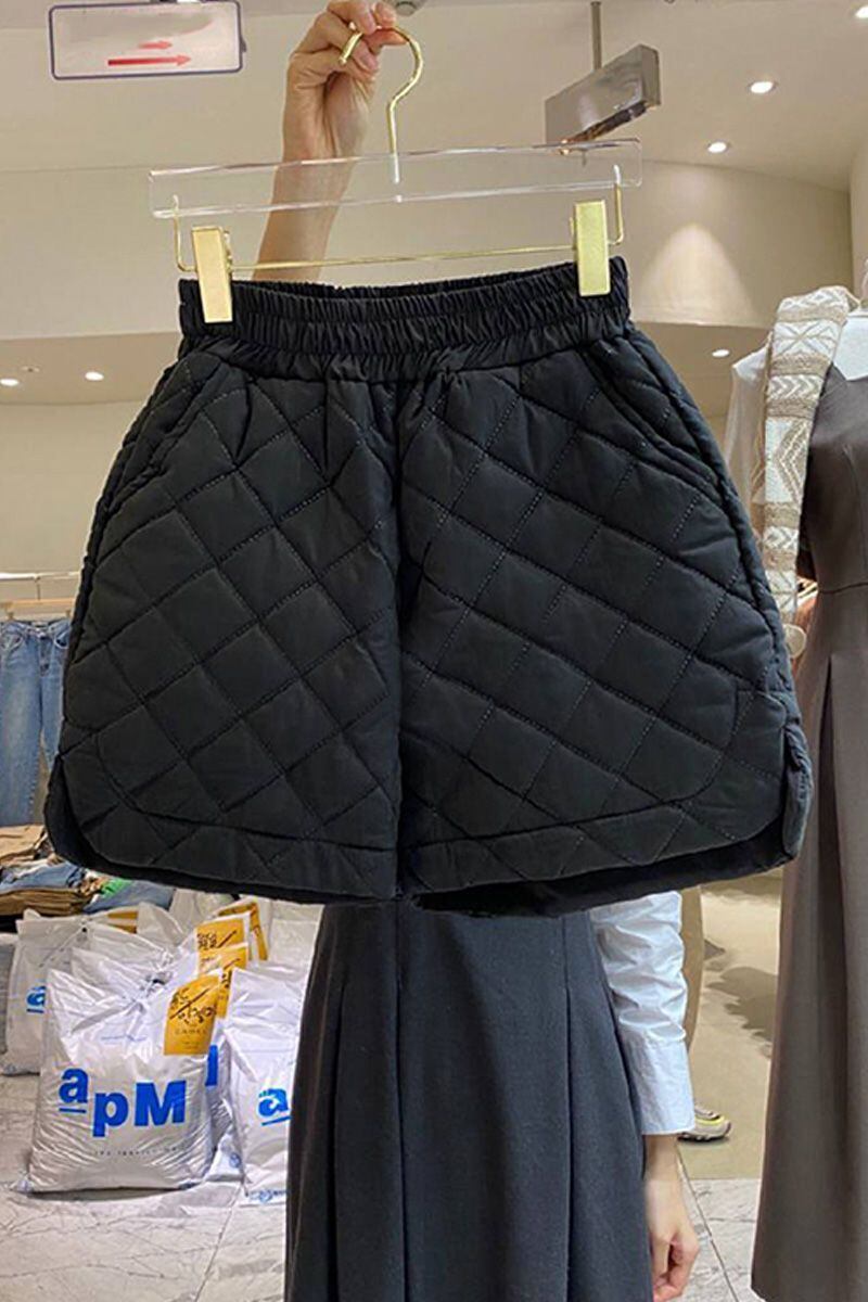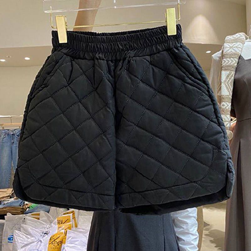 ワイドレッグ弾性ショーツキルティングコットンショーツ Feminino ウエストパンタロン Cortos De Black Y2k ショーツチェック柄 ブラック エラスティック 伸縮 ブルマー ワイドパンツ