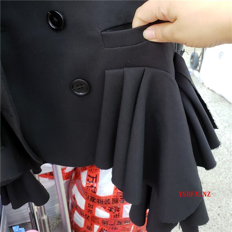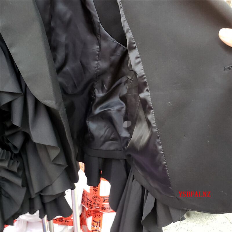 アウター不規則レイヤードフリルルーズブラックブレザーベストシャーリングチョッキジャケットコート レッド ラッフル