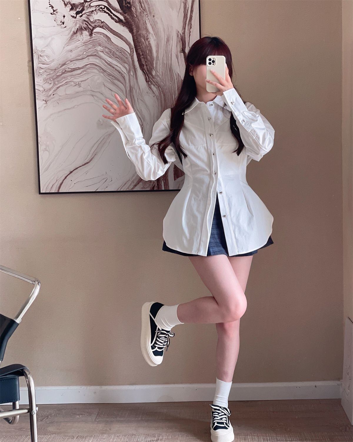 ラブボタンシャツ Kpop シック服 ese プレッピースタイル白シャツ妖精グランジストリート ホワイト