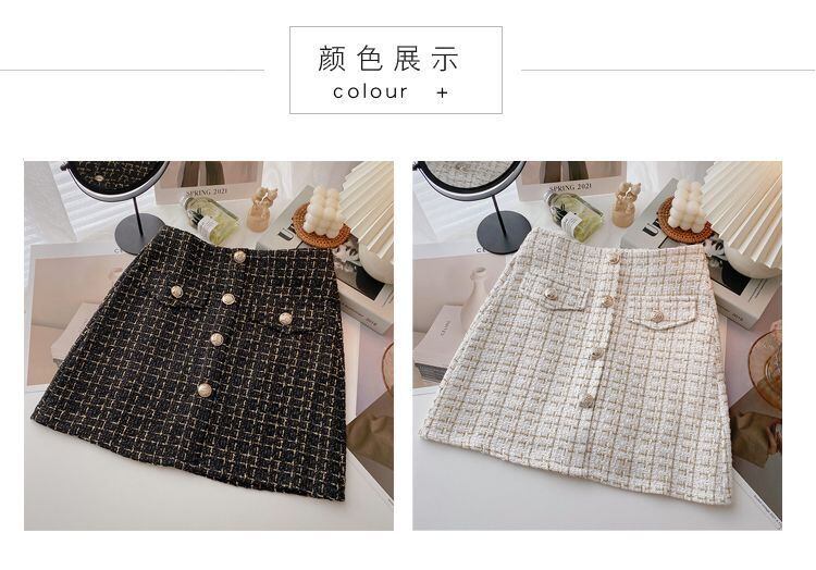 春光沢ある黒ツイードハーフスカート段段ファルダモーダスリムレトロオフィスレディミニチェック柄スカート Y2k ブラック スプリング 春物 シルク 会社 学校 通勤や通学にも