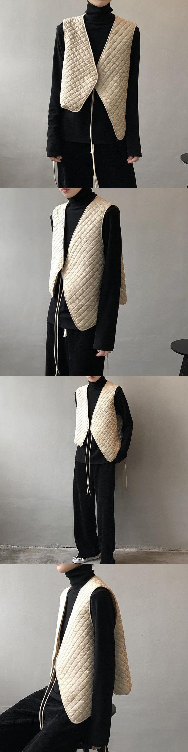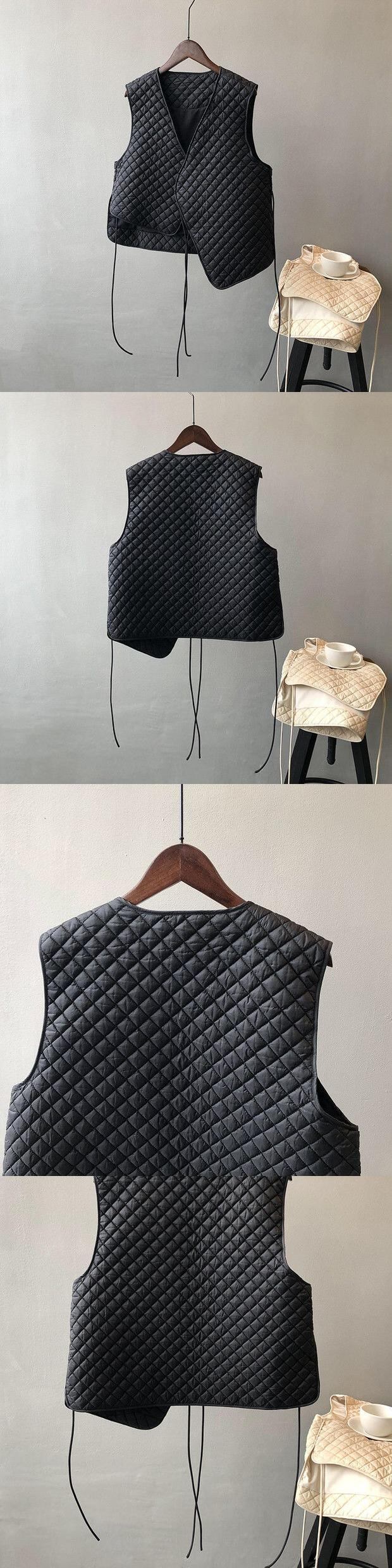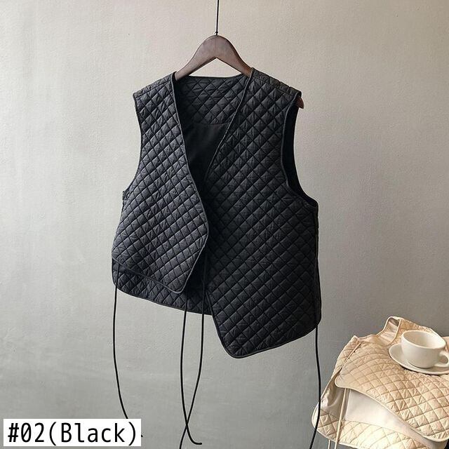 黒レースアップチョッキ秋ルーズトップス V ネックすべて一致ストリート薄いジャケット ブラック Vネック