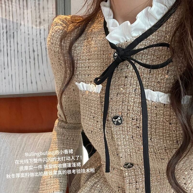 秋冬長袖ドレスツイード Vestidos es パラミニパーティーチェック柄ドレスレトロ Y2k ローブ ロング オータム 秋物 ウィンター 冬物