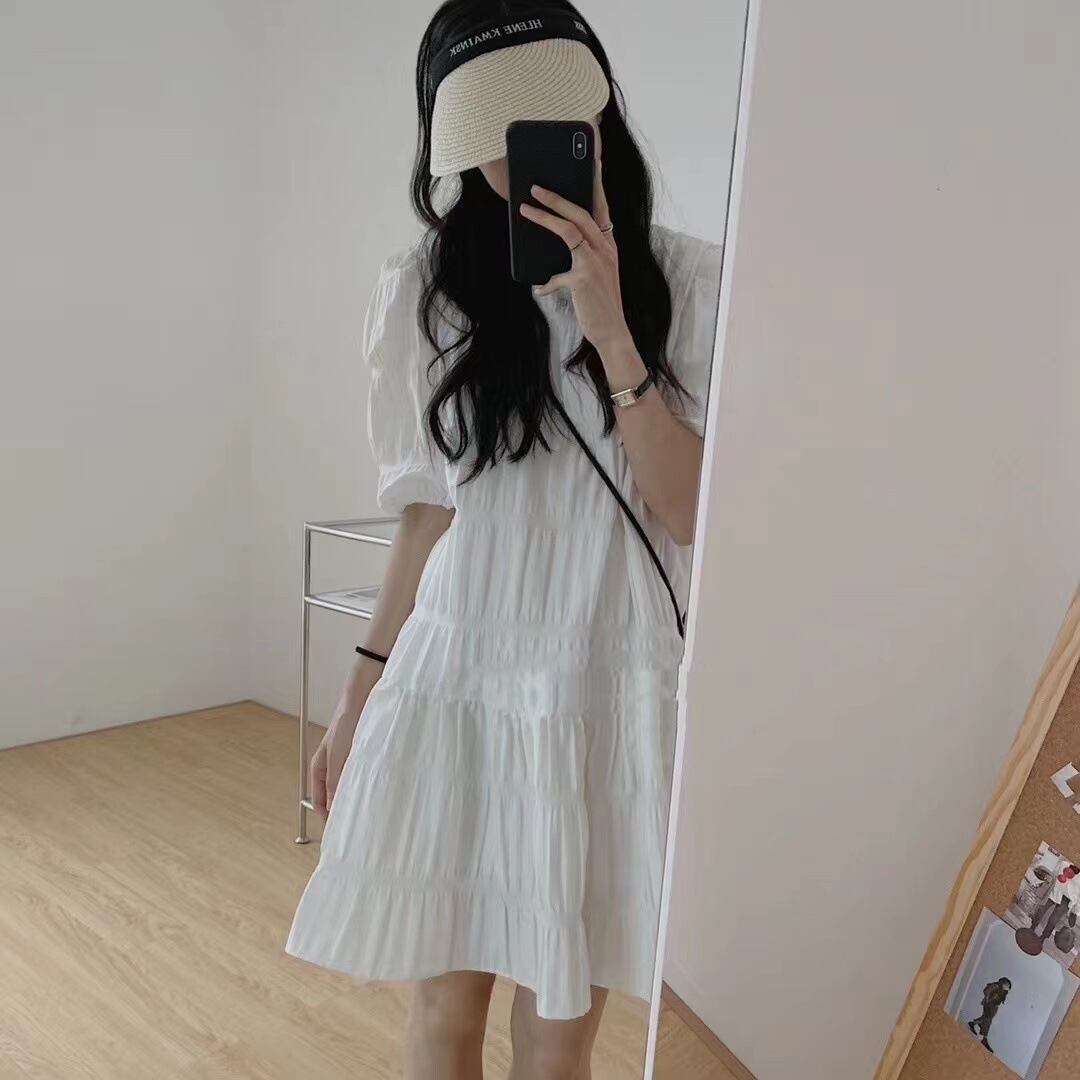 Vestido Feminino ミニ白人形ドレスパフ半袖ヒップ Y2k セクシープリーツシャツルーズローブ黒ドレス ショート ホワイト ブラック ハーフスリーブ