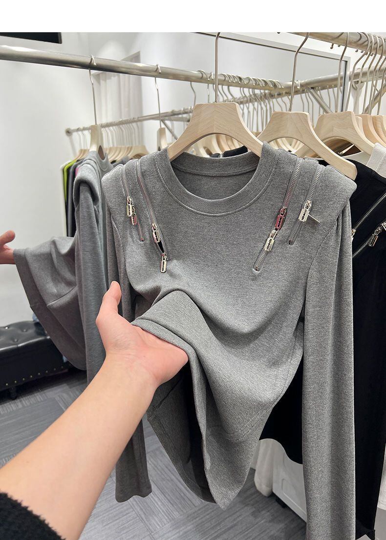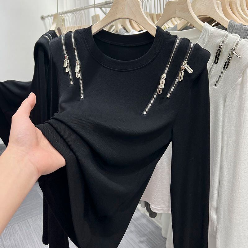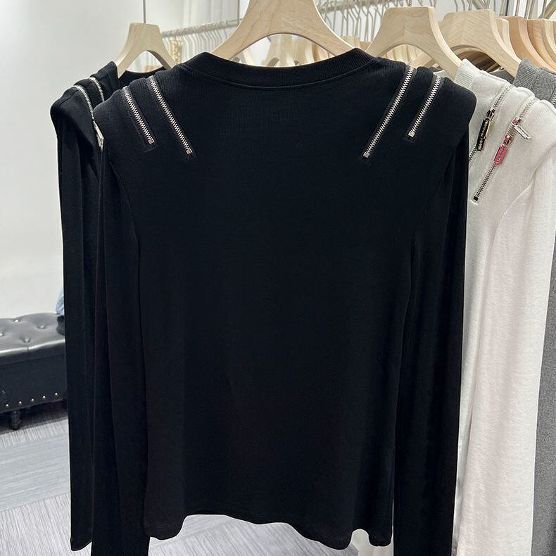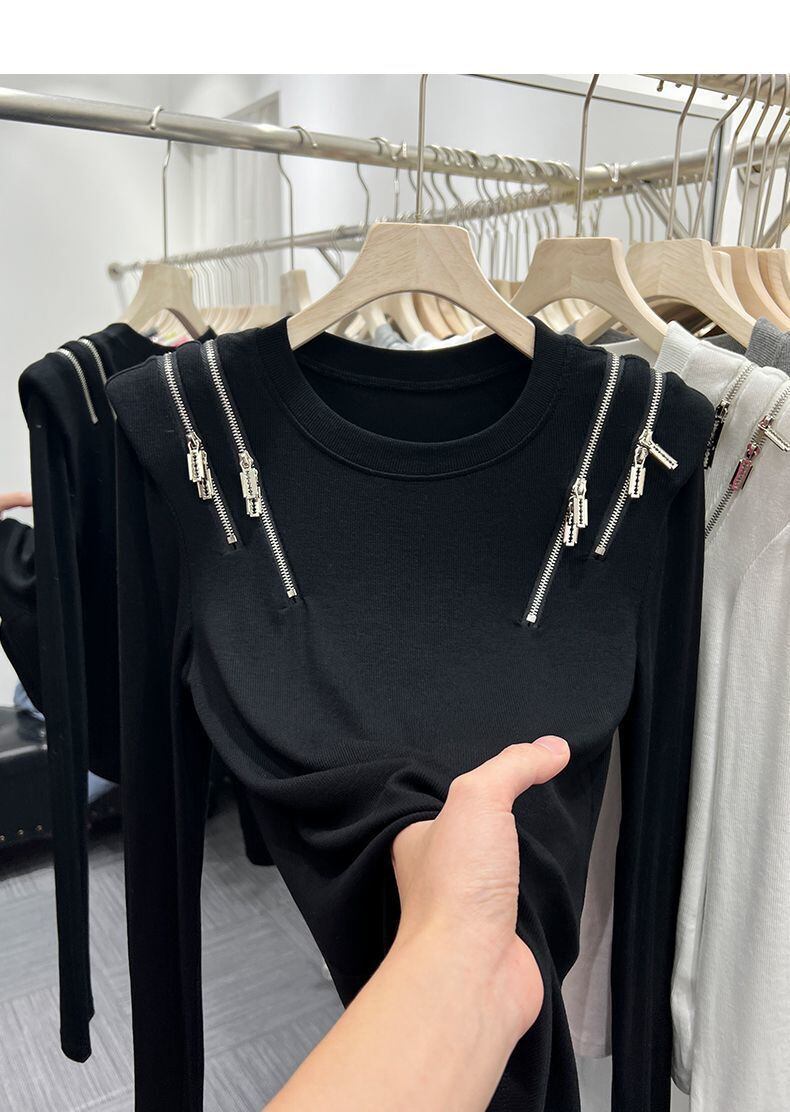 綿 Tシャツ O ネック黒ジッパー Tシャツグラフィック Tシャツ春白グレー Y2k トップシャツ ホワイト ブラック コットン スプリング 春物 Oネック