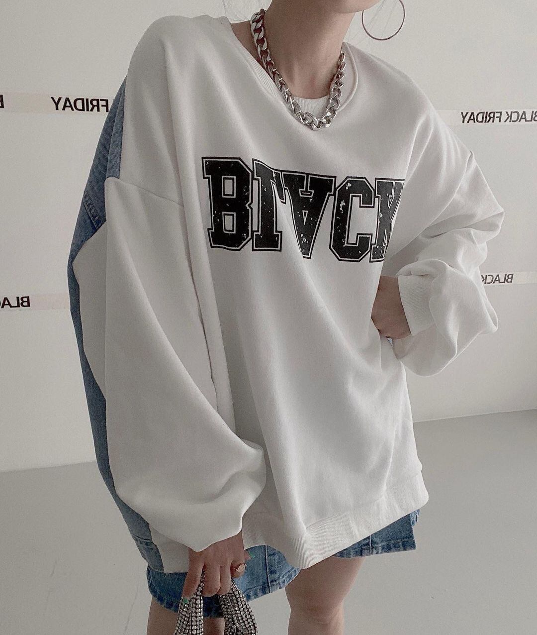 Sudaderas パラルースデニムスウェットステッチ Y2k 冬服グランジレターパーカープリントトップ原宿 シャツ かわいい ウィンター 冬物