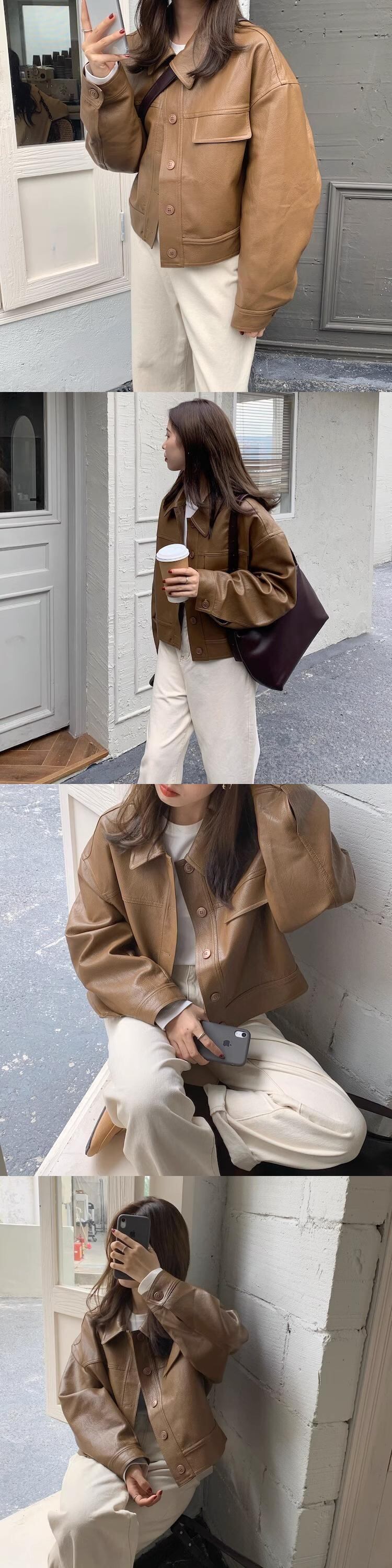 Y2K モトレザージャケットショートシックストリート長袖コート春ターンダウン襟フェイクレディジャケットブラック PU ロング スプリング 春物 ファー